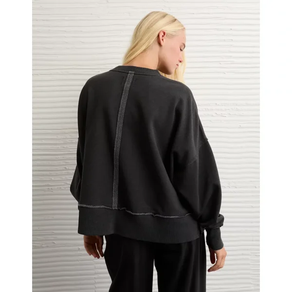 Ultra-soft & cozy fleeceCrew necklineLong sleevesAll-over exposed seam detailingSplit hem 53% Cotton, 47% Recycled PolyesterMachine washImported Oversized fitLonger length