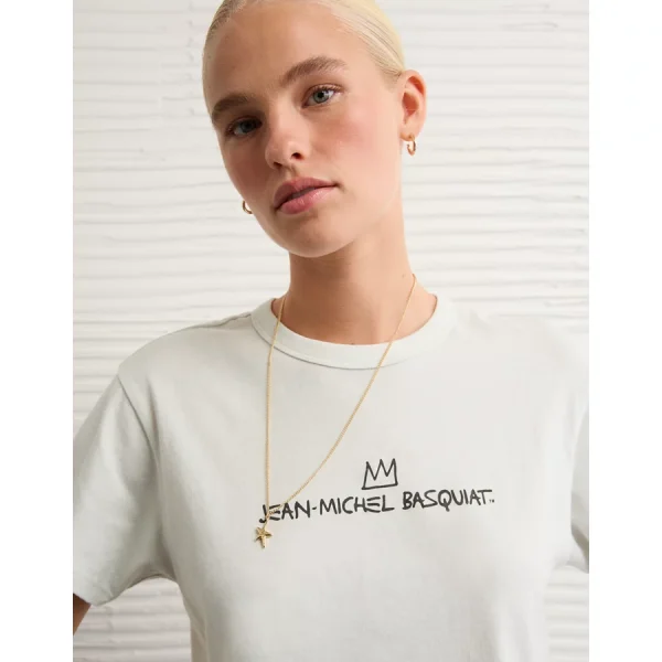 Super soft 100% cotton jerseyCrew neckJean-Michel Basquiat chest graphicShort sleeves 100% CottonMachine washImported Classic fitCropped length