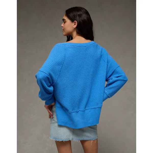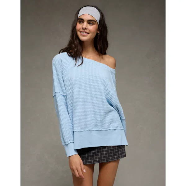 AE Big Hug Off-The-Shoulder Waffle Sweatshirt – Skylight