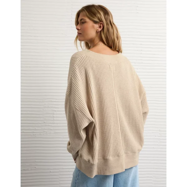 AE Big Hug V-Neck Waffle Sweatshirt – Oatmeal Heather