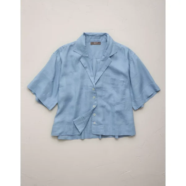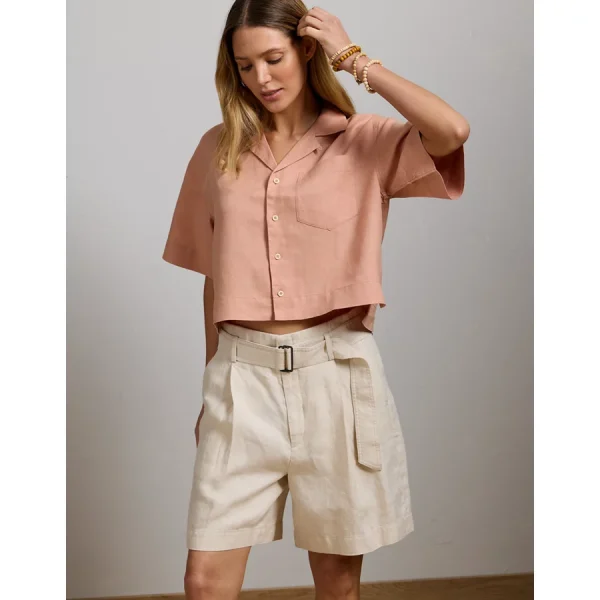 European Flax-certified linenCamp collar designed to lay flatButton front closure 100% LinenMachine wash. Lay flat to dry.Imported Relaxed, boxy fitCropped