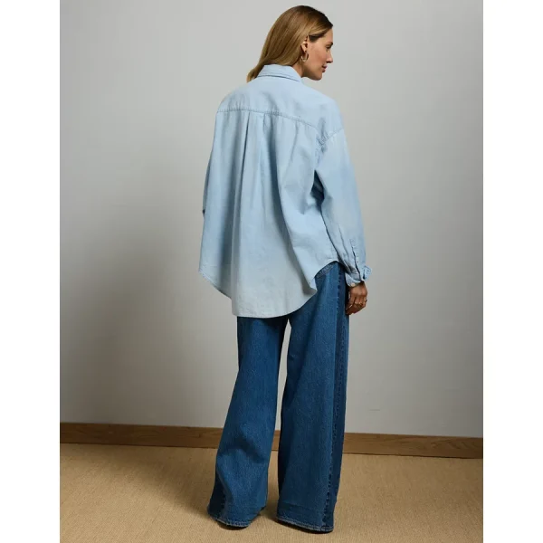 AE77 Premium Denim Boyfriend Shirt – Light Wash