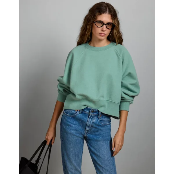 Soft cotton fleece blendCrew neckBanded hem 79% Cotton, 21% PolyesterMachine washImported Relaxed fitCropped lengthLong sleeves