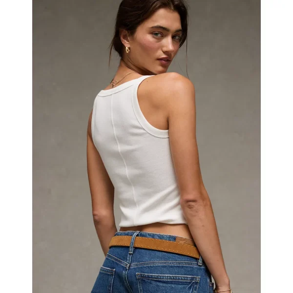 Super soft ribbed fabricationSpaghetti strapsVelvet trim detailV-neckThis tank is Real Good: Made with the planet in mind & a promise