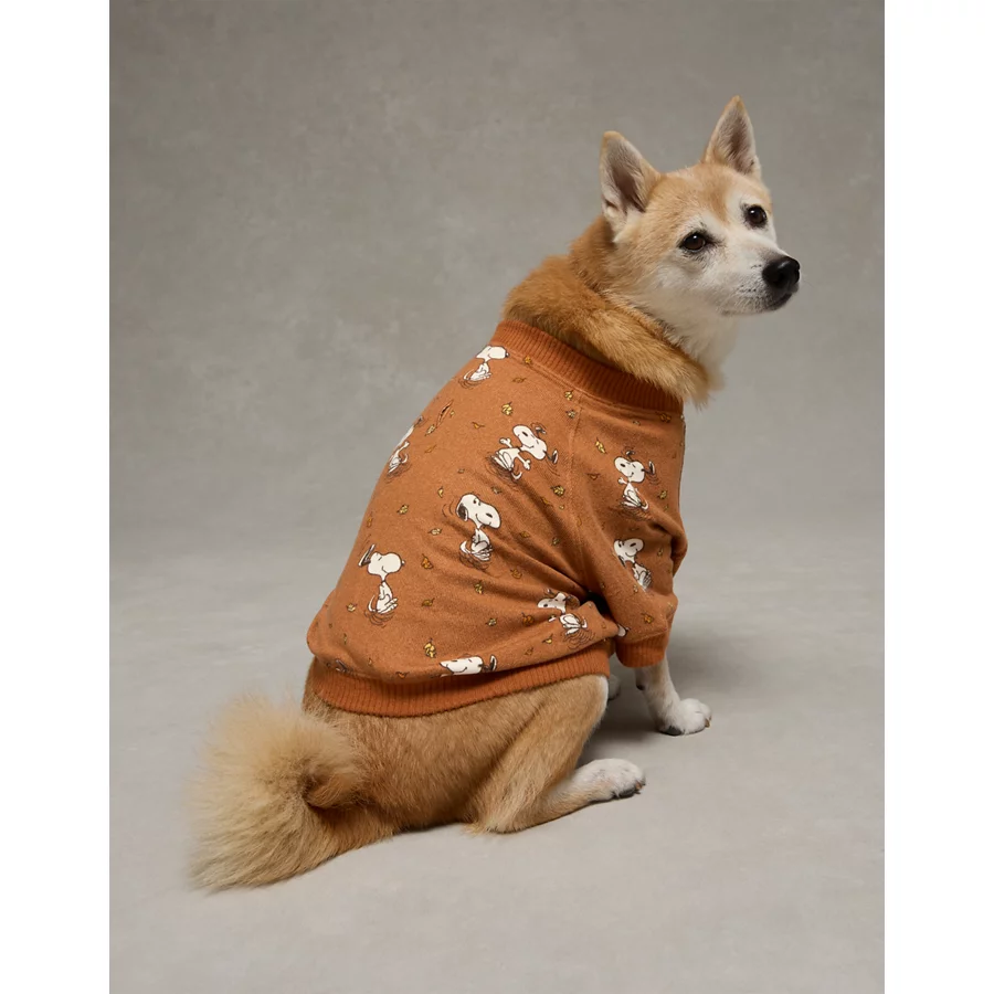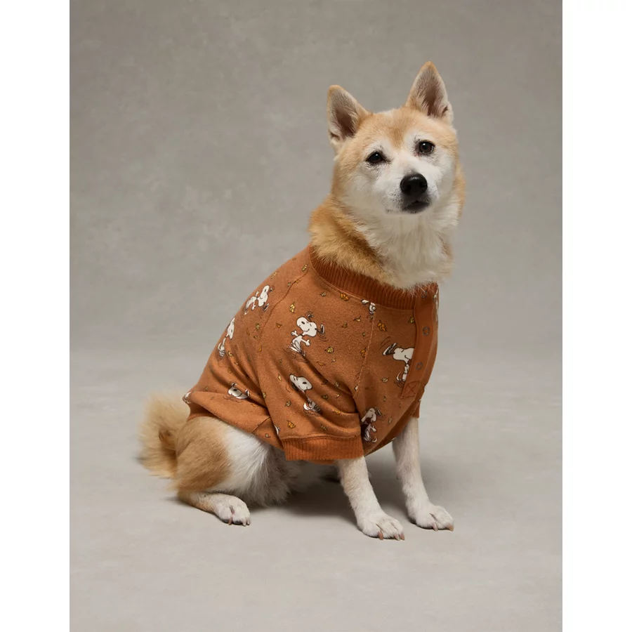 ABO Snoopy Fall Leaves Plush PJ Shirt – Brown