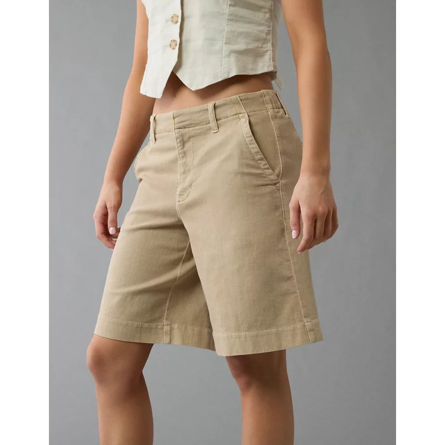 AE 11″ Stretch High-Waisted Trouser Short – Khaki