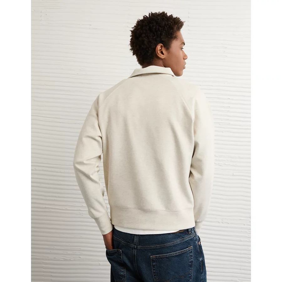 AE 24/7 Long-Sleeve Rugby Polo Sweatshirt - Raw White