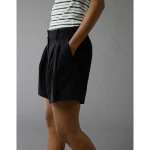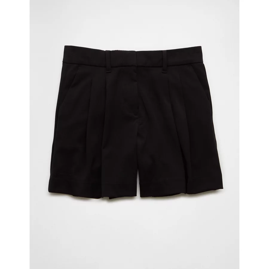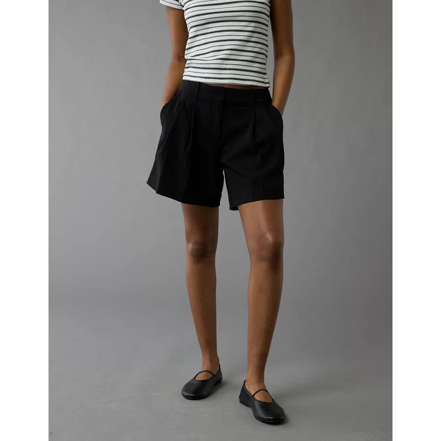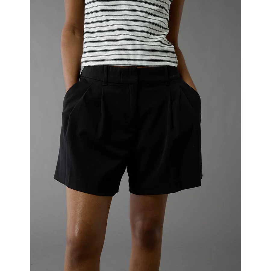 AE 6″ Stretch High-Waisted Pleated Trouser Short – Black
