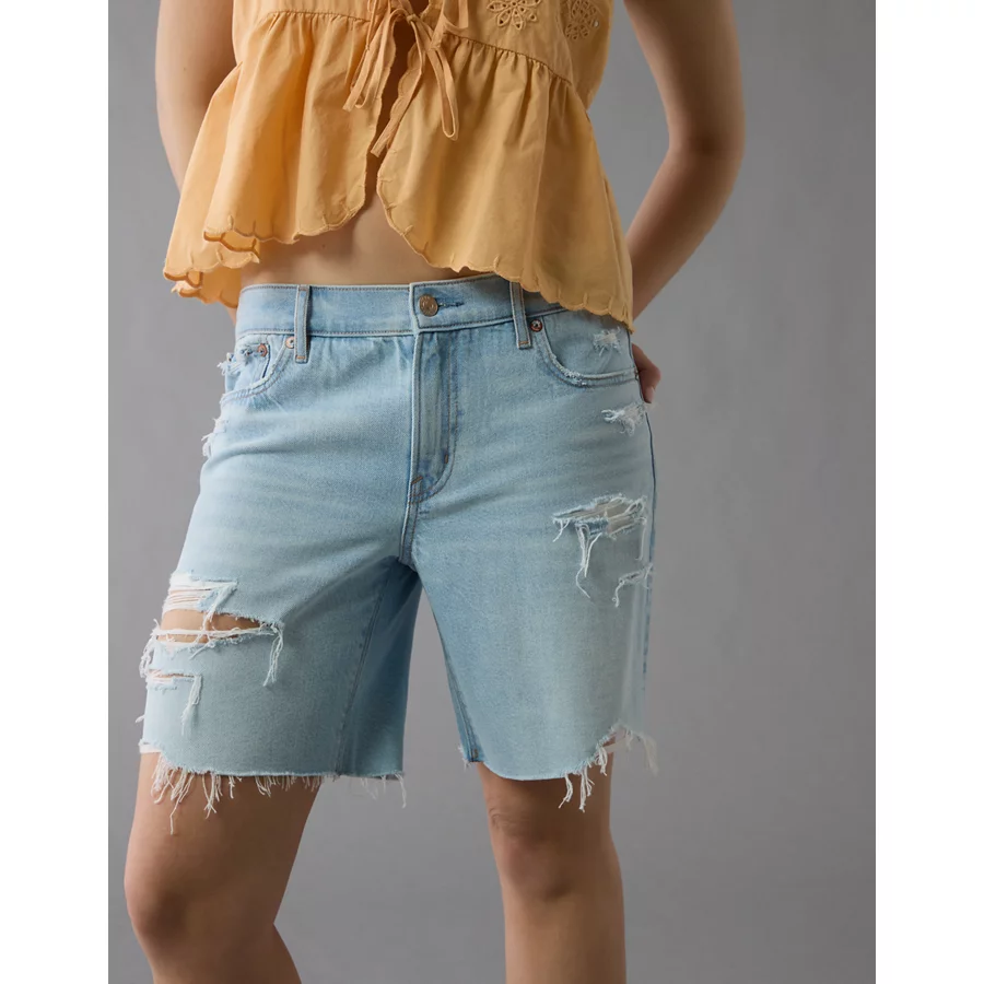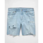AE 8″ Strigid Ripped Perfect Denim Bermuda Short – Destroyed Light Wash