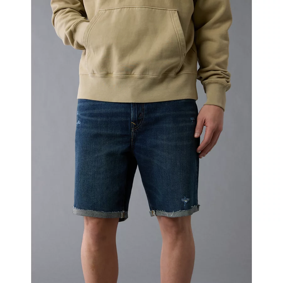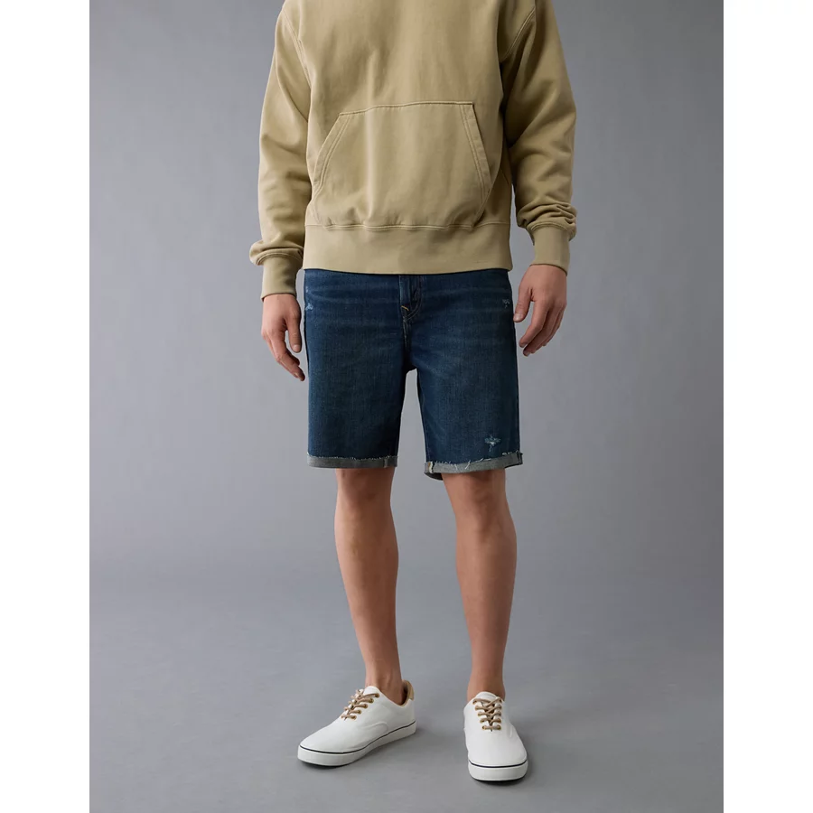 AE 8" Strigid Ripped Perfect Denim Bermuda Short - Destroyed Light Wash