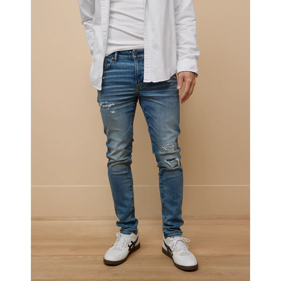 AE AirFlex+ Ripped Skinny Jean – Destroyed Medium Wash