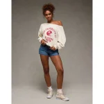 AE Alabama Crimson Tide Graphic Off The Shoulder Sweatshirt – Cream