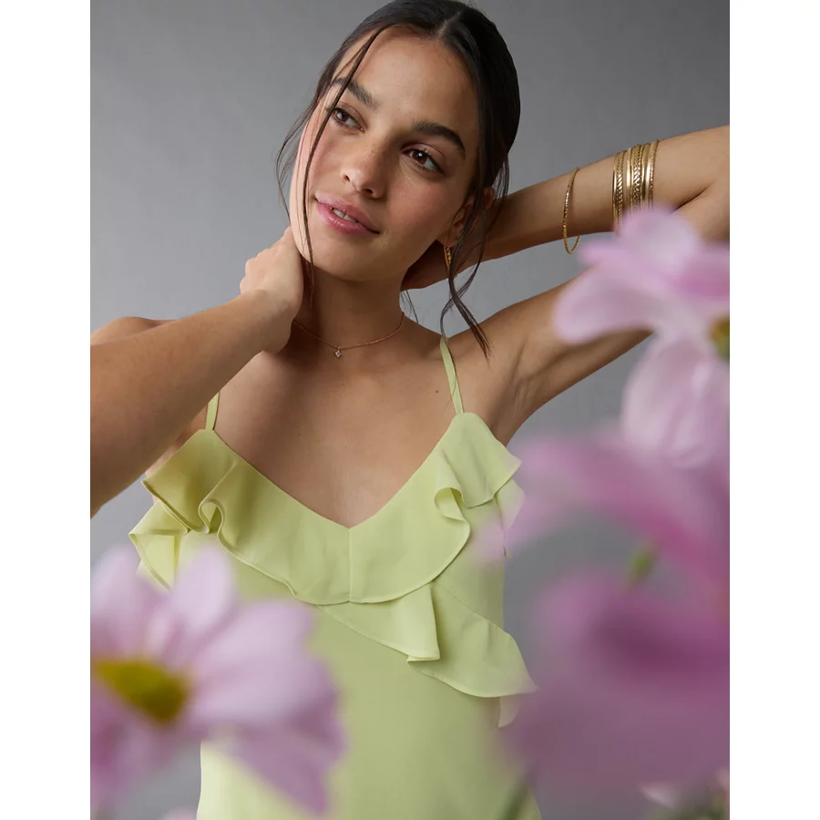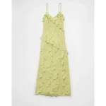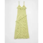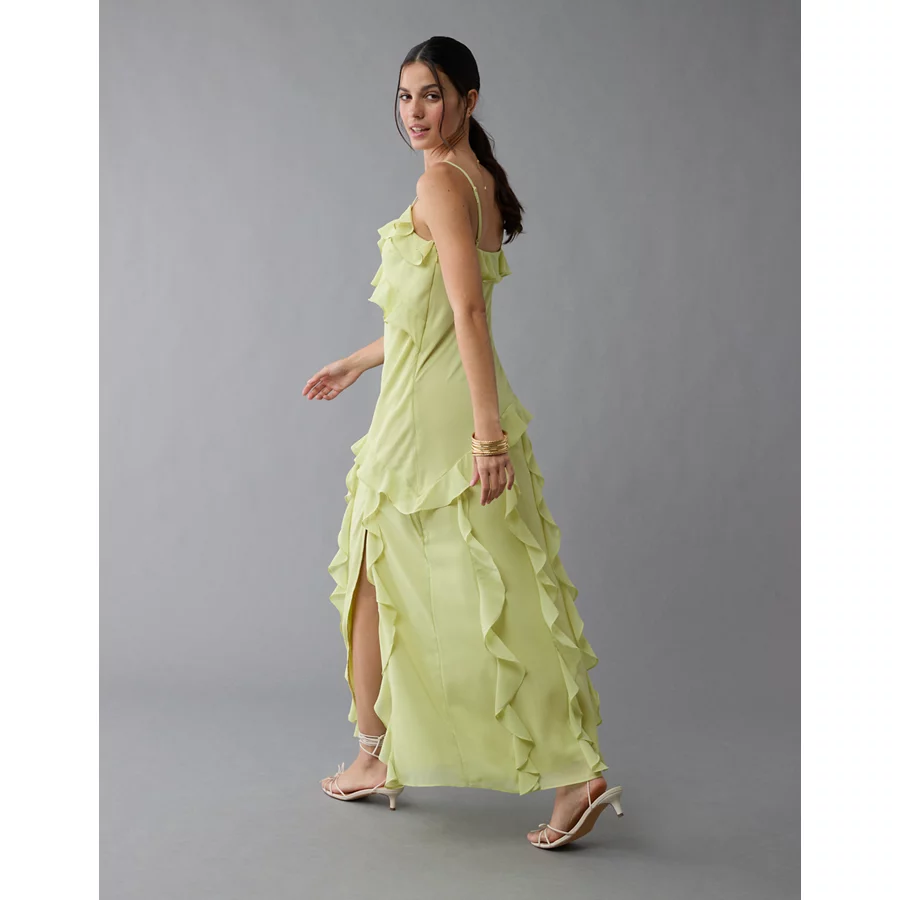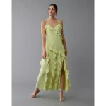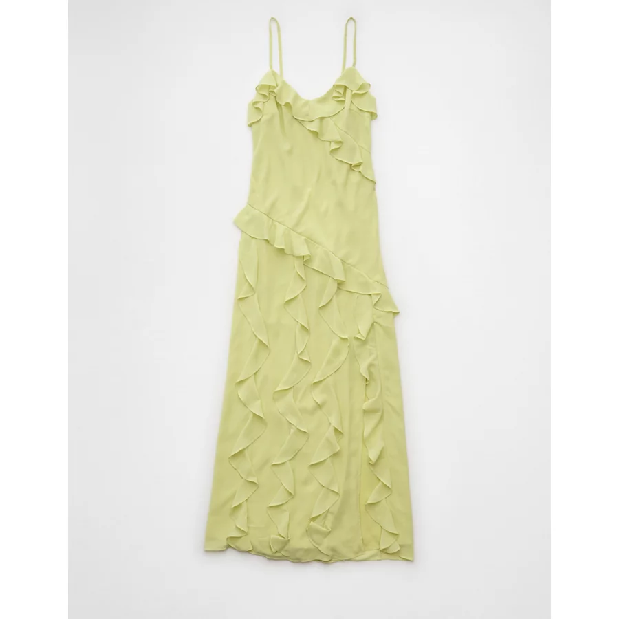 AE Asymmetrical Ruffle Maxi Slip Dress – Lime