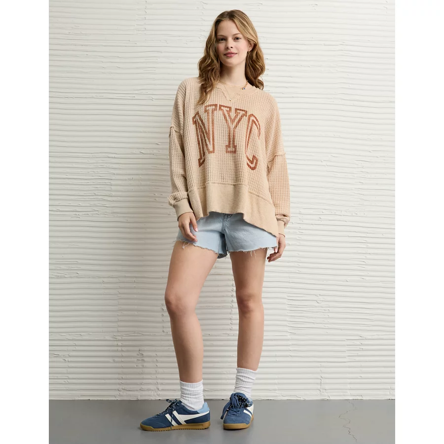 AE Big Hug Crew Neck Waffle Sweatshirt – Oatmeal Heather