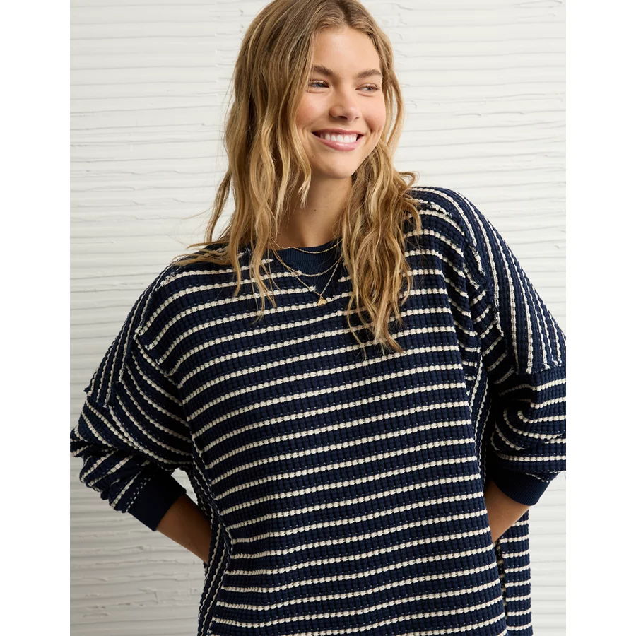 AE Big Hug Crew Neck Waffle Sweatshirt – Rich Navy