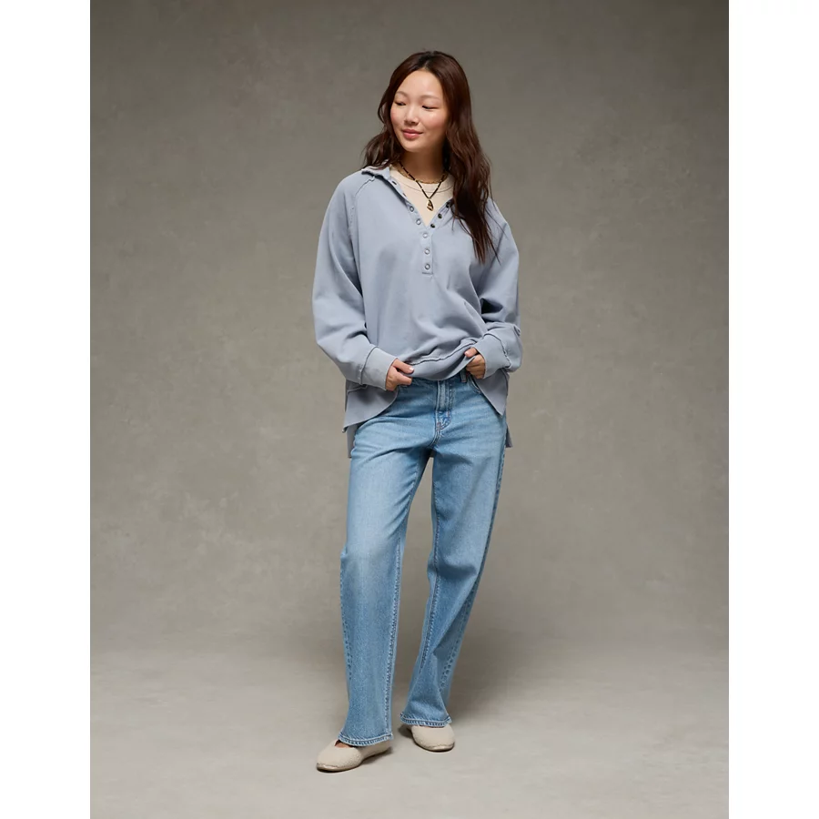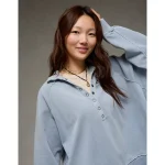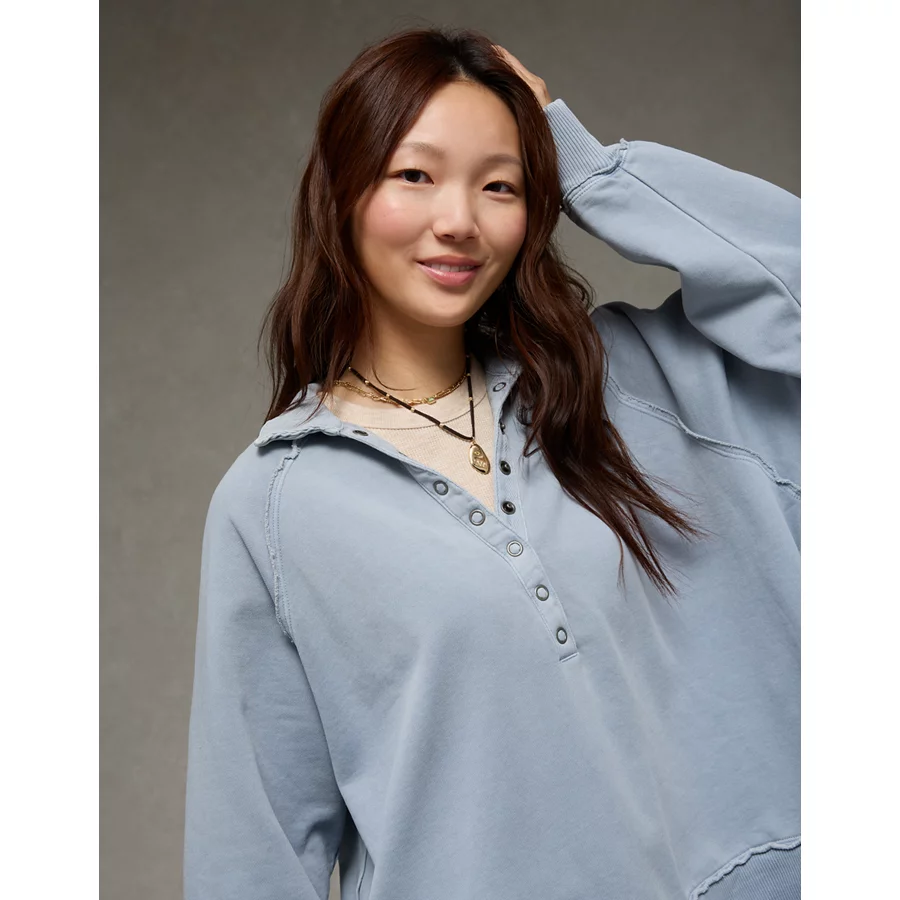 AE Big Hug Henley Sweatshirt – Powder Blue