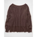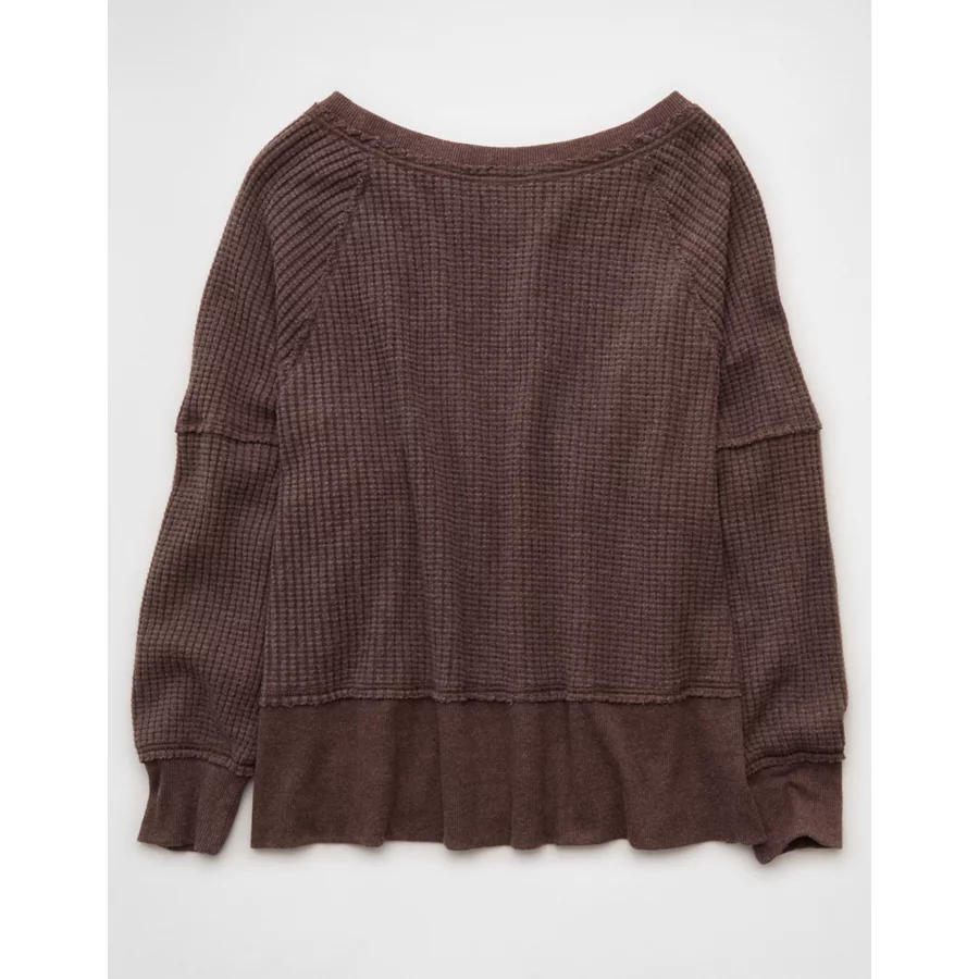 AE Big Hug Off-The-Shoulder Waffle Sweatshirt – Chocolate