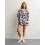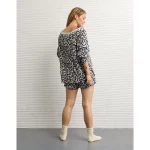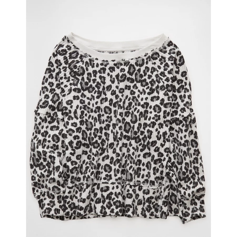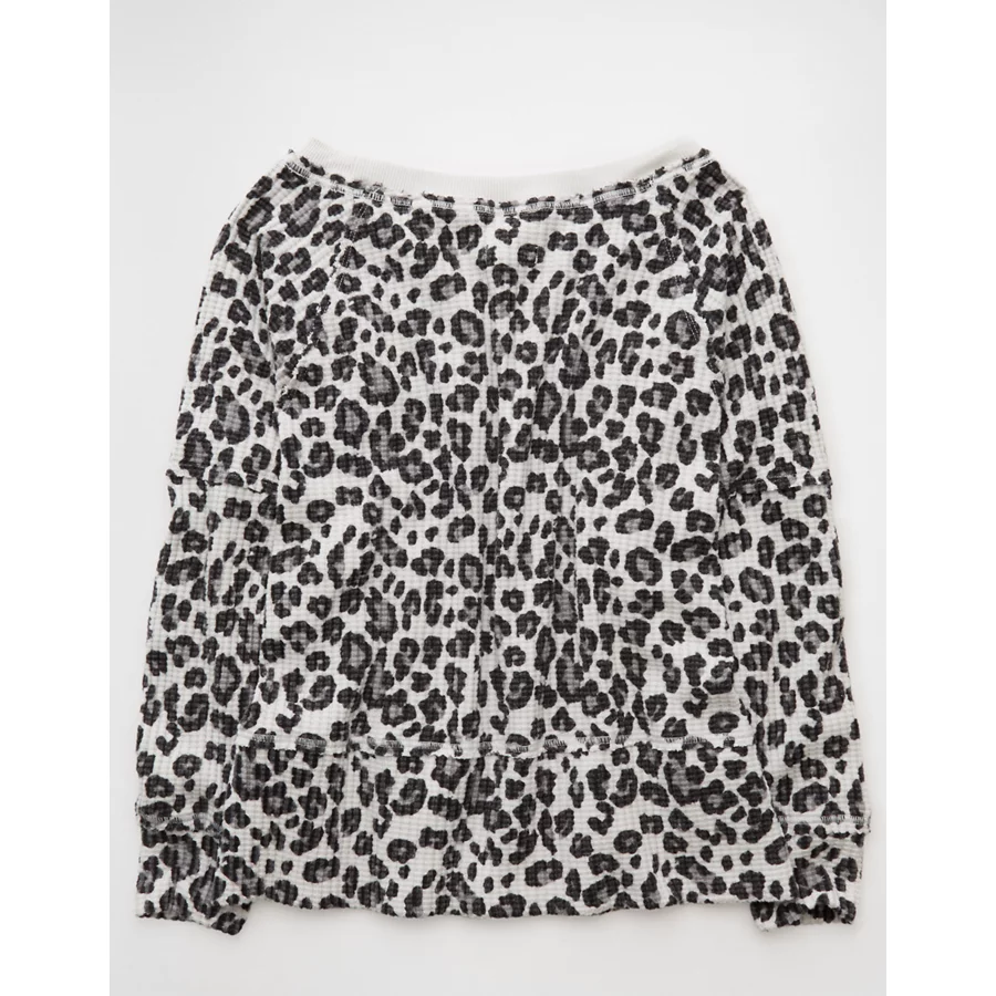 AE Big Hug Off-The-Shoulder Waffle Sweatshirt – Grey