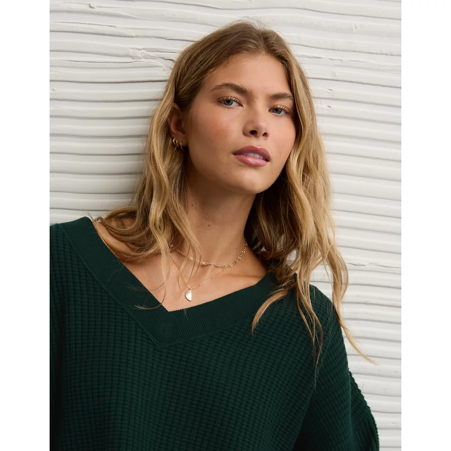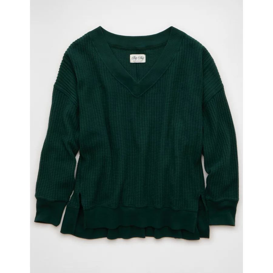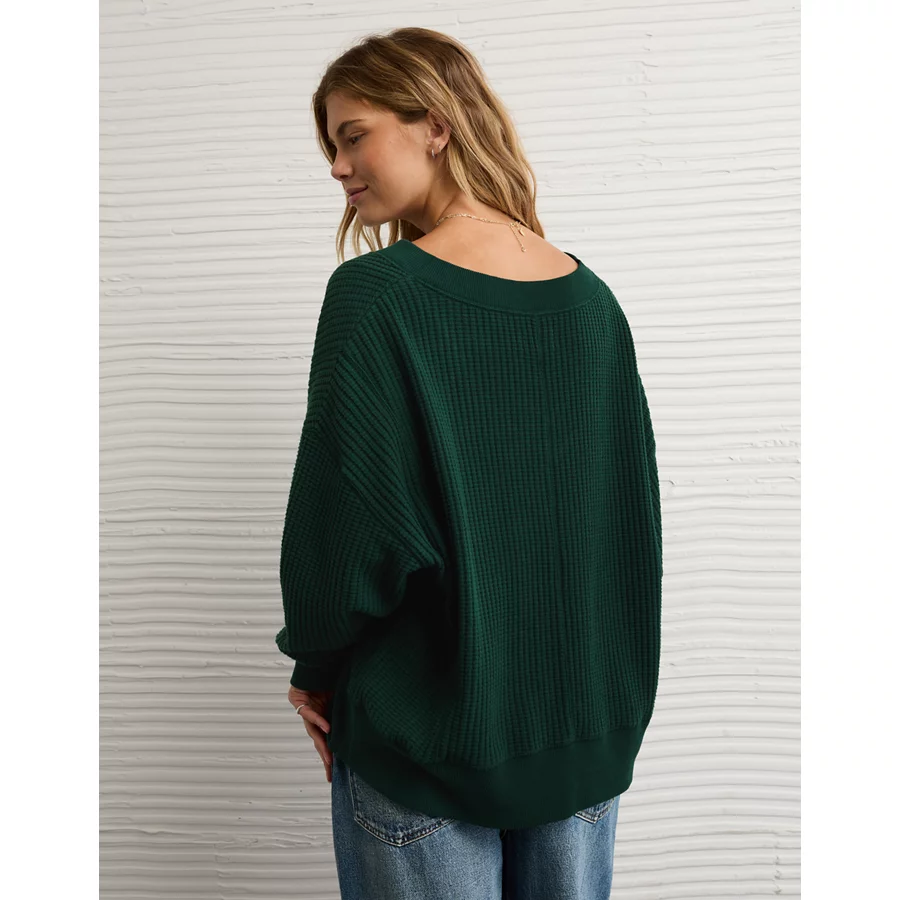 AE Big Hug V-Neck Waffle Sweatshirt – Deep Forest