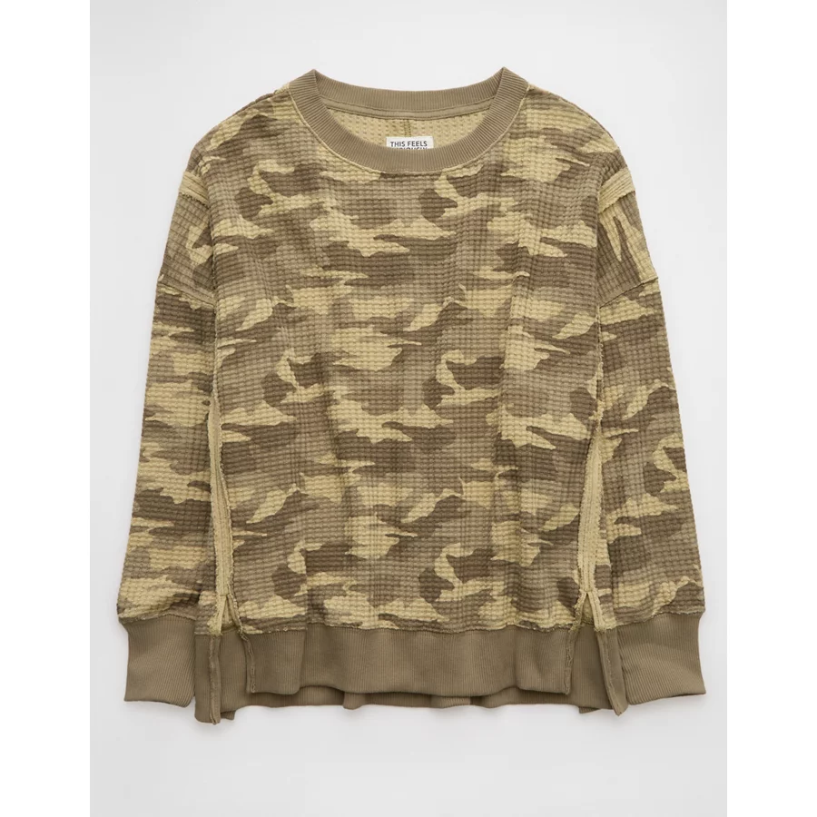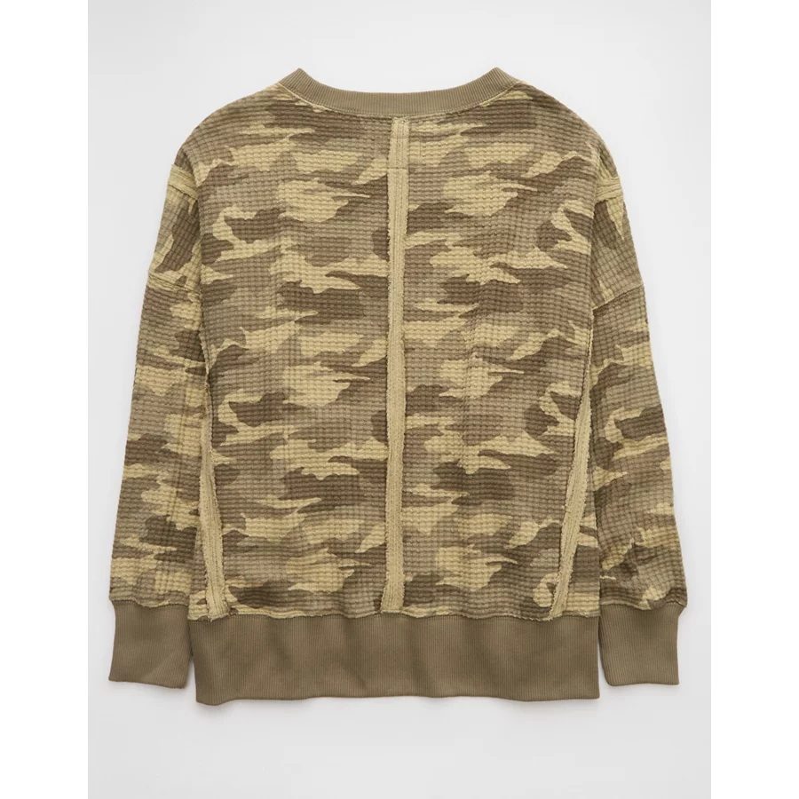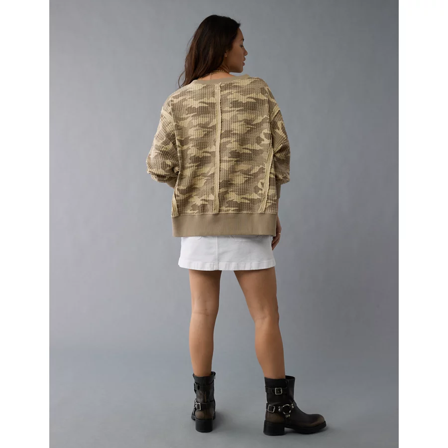 AE Big Hug Waffle Sweatshirt – Camo Green
