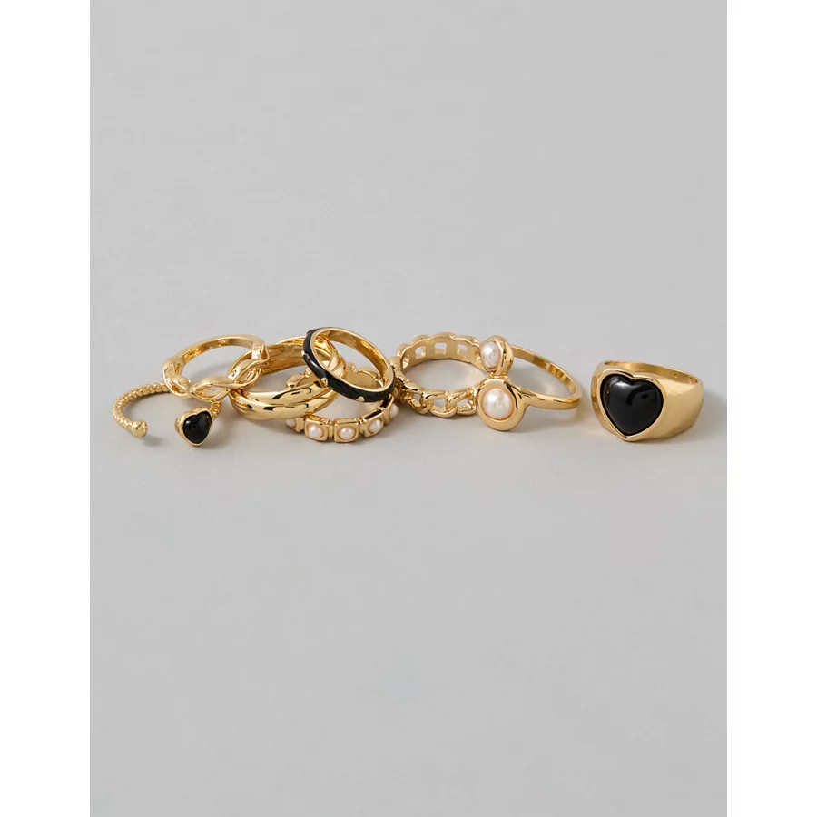 AE Black & Gold Heart Rings 8-Pack – Gold