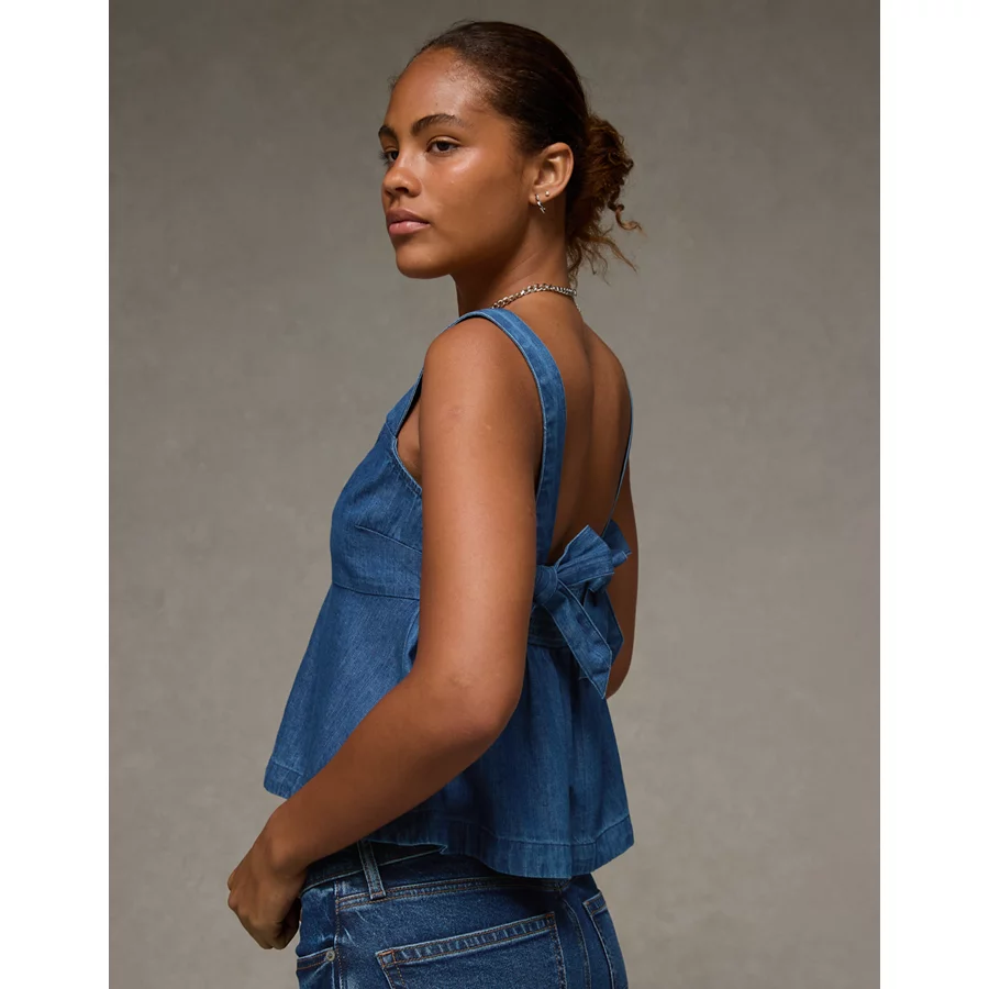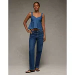 AE 11″ Dreamy Drape Stretch High-Waisted Jort – Light Tinted Wash