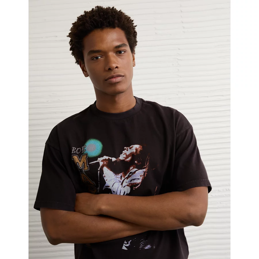AE Boxy Bob Marley Graphic T-Shirt – Faded Black