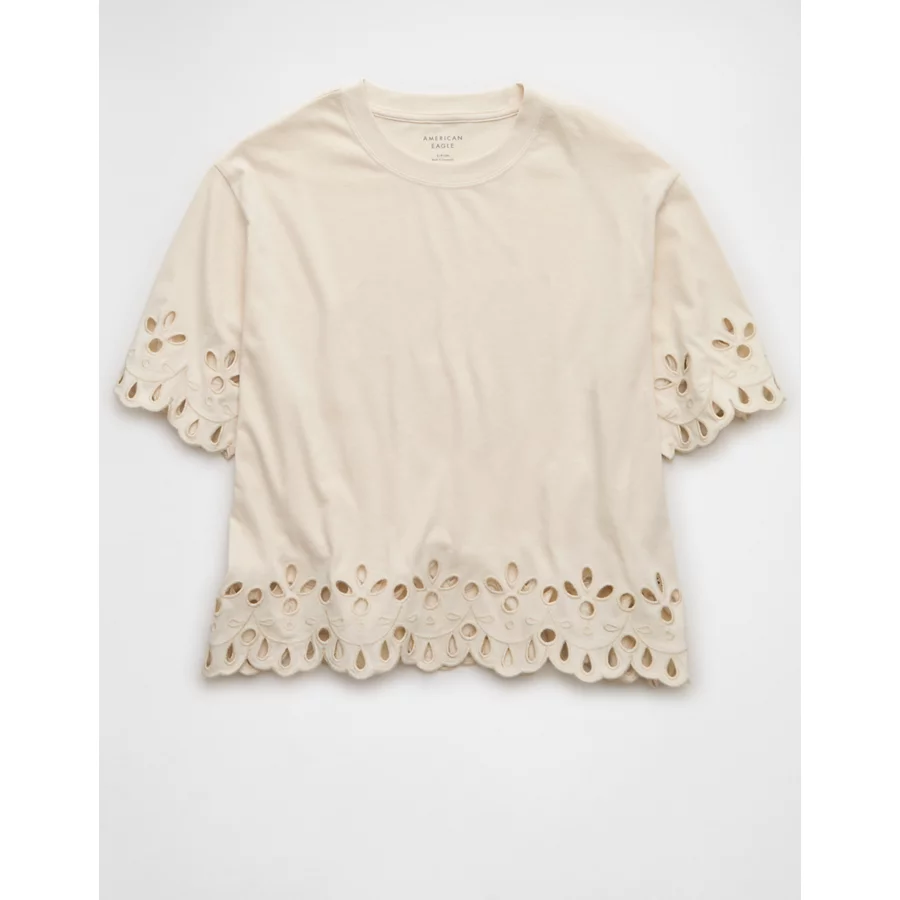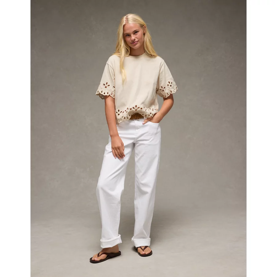 AE 8″ Dreamy Drape Stretch Low-Rise Baggy Jort – White