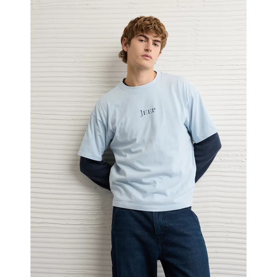 AE Boxy Jeep Graphic T-Shirt – Light Blue