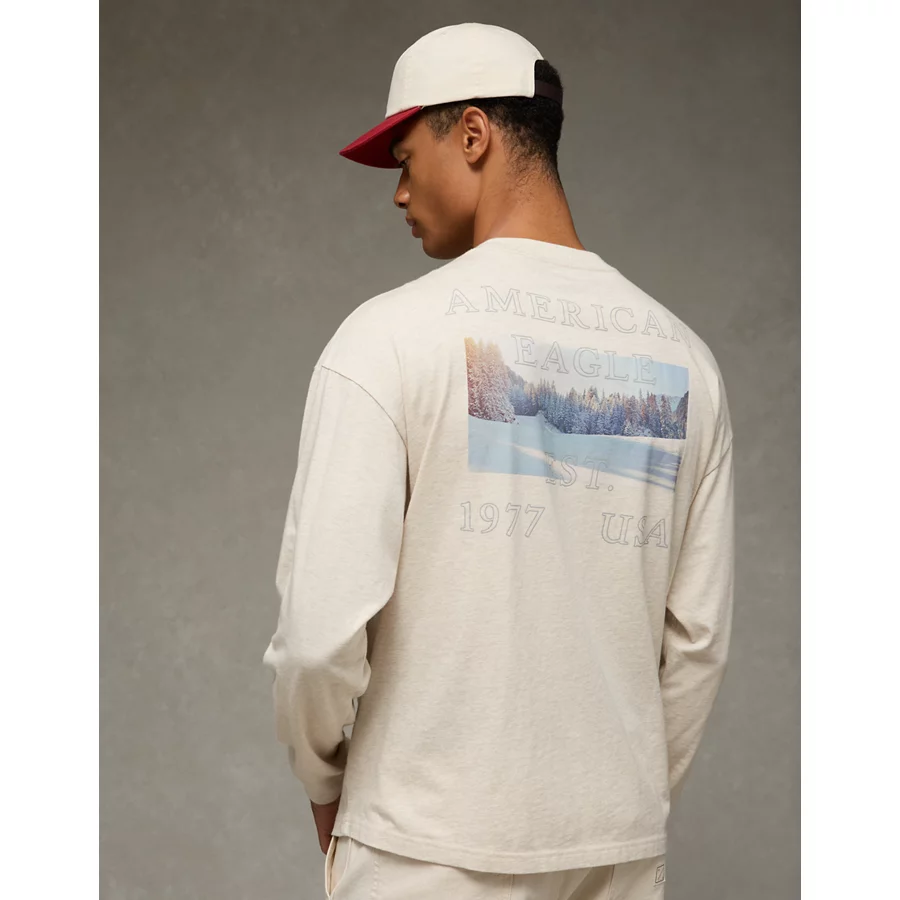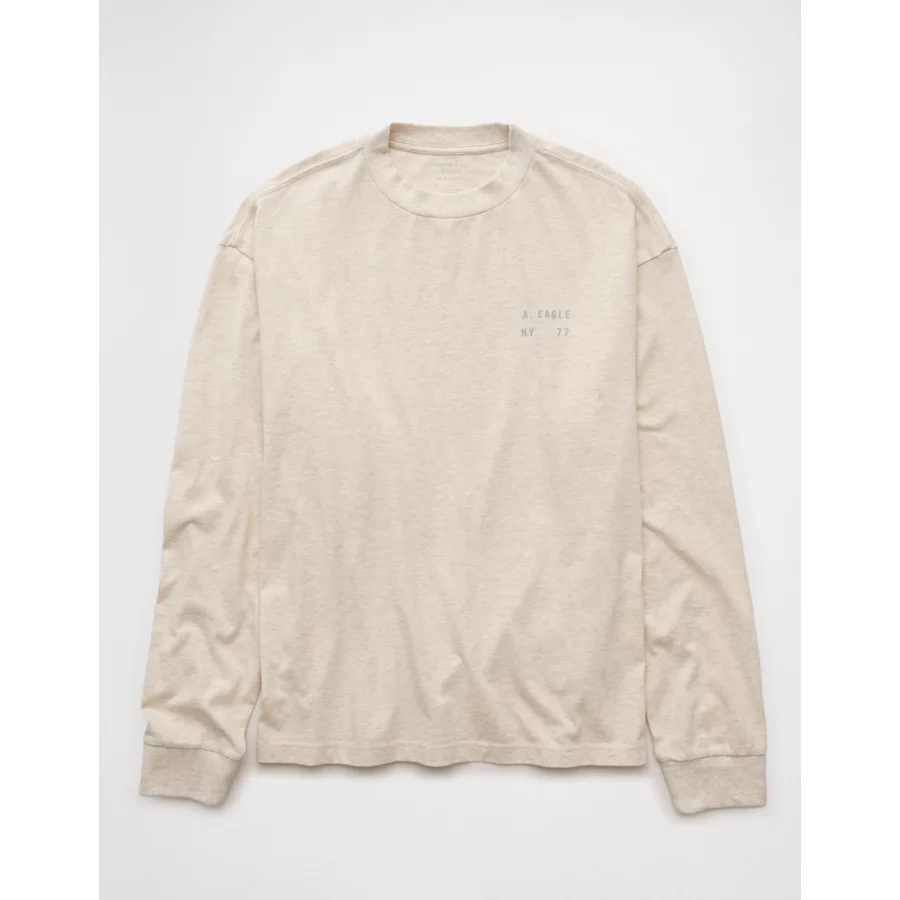 AE Boxy Long Sleeve Destination Graphic T-Shirt – Oatmeal Heather