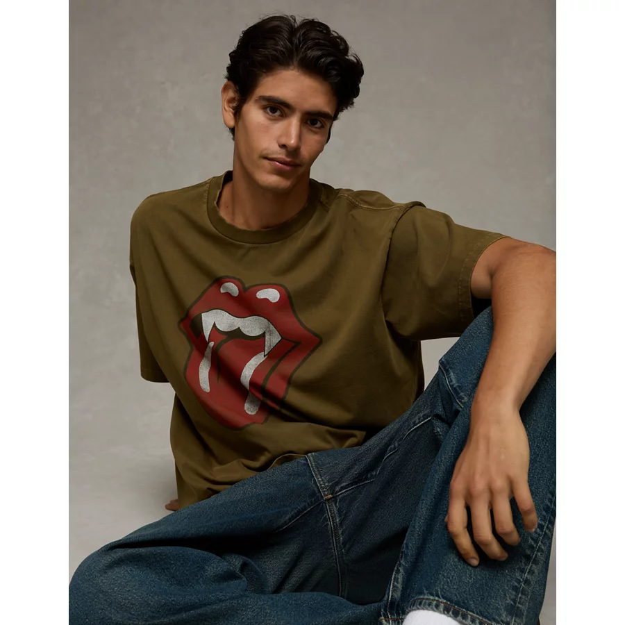 AE Boxy Rolling Stones Graphic T-Shirt – Olive Moss