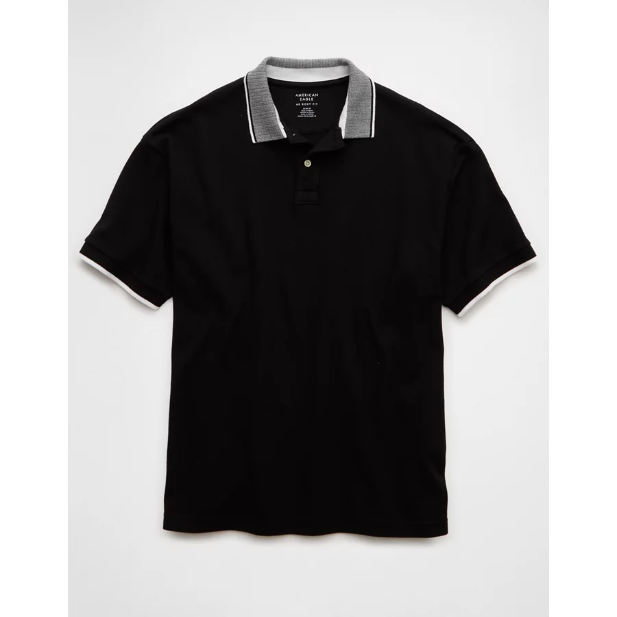 Super soft jersey with added stretchPolo collar with button placketAE 24/7 logoThis is Real Good: Made with the planet in