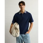 AE Boxy Stretch Pique Polo Shirt – Navy