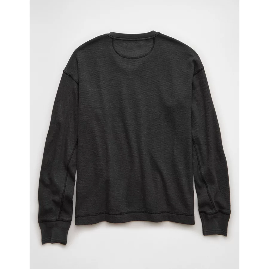 AE Boxy Washed Thermal Henley Shirt – Smoked Gray
