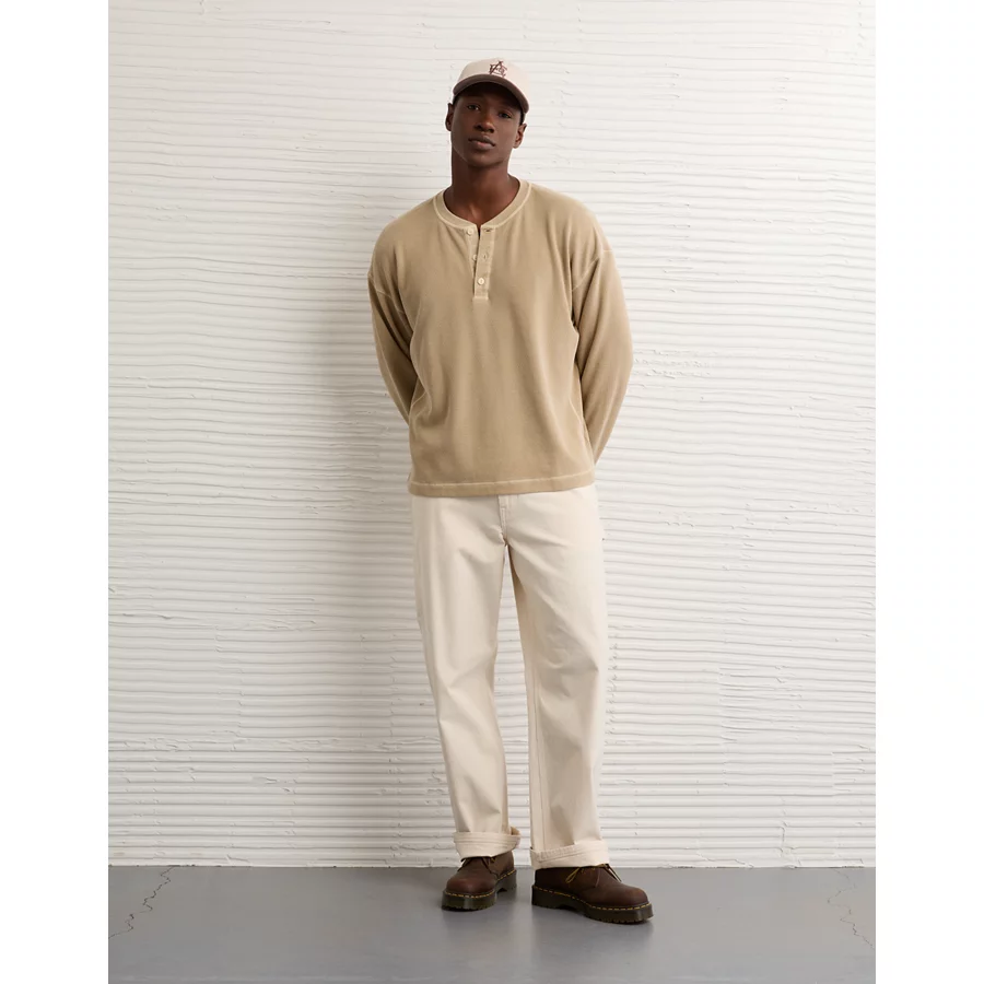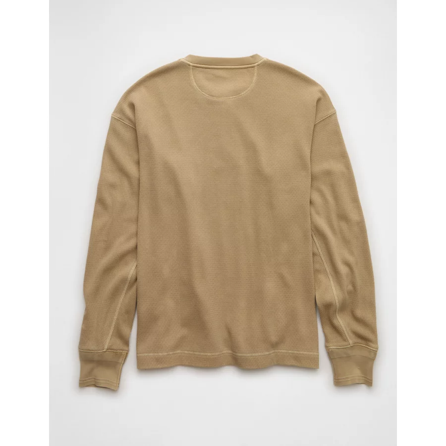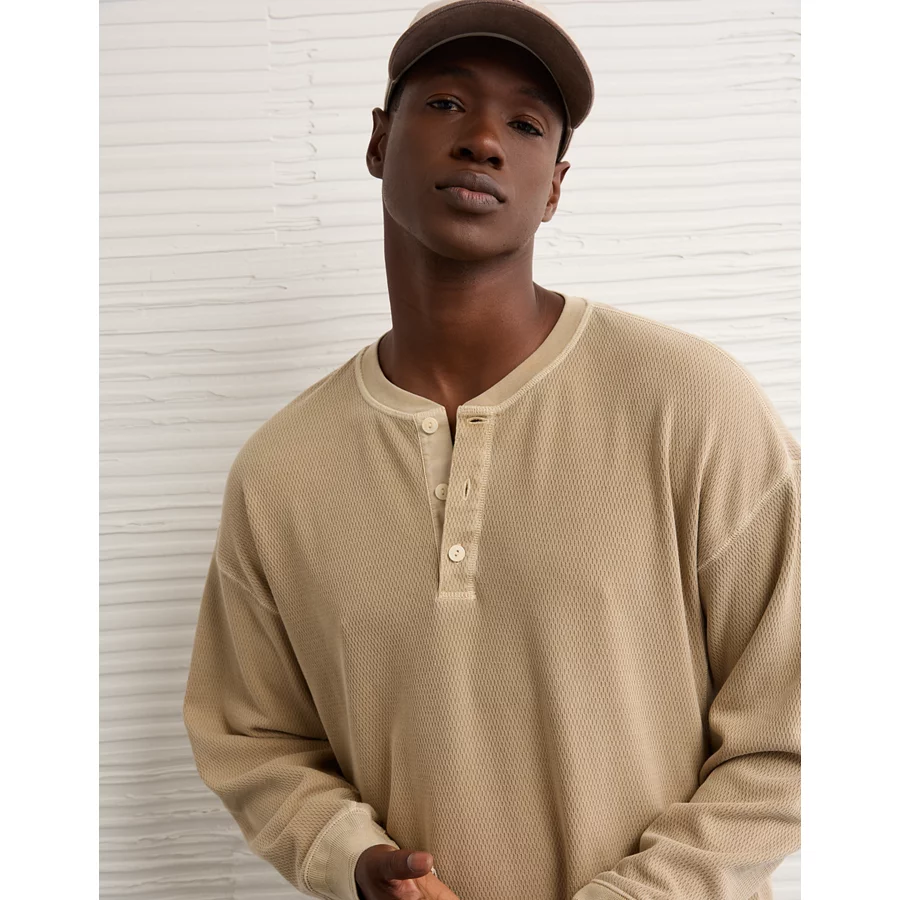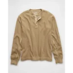 AE Boxy Washed Thermal Henley Shirt – Tan