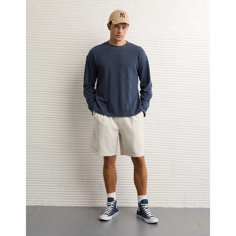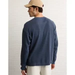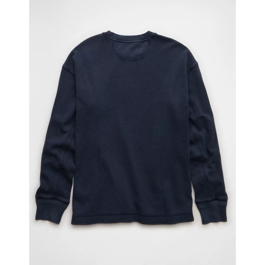 AE Boxy Washed Thermal Henley Shirt - Soft Blue