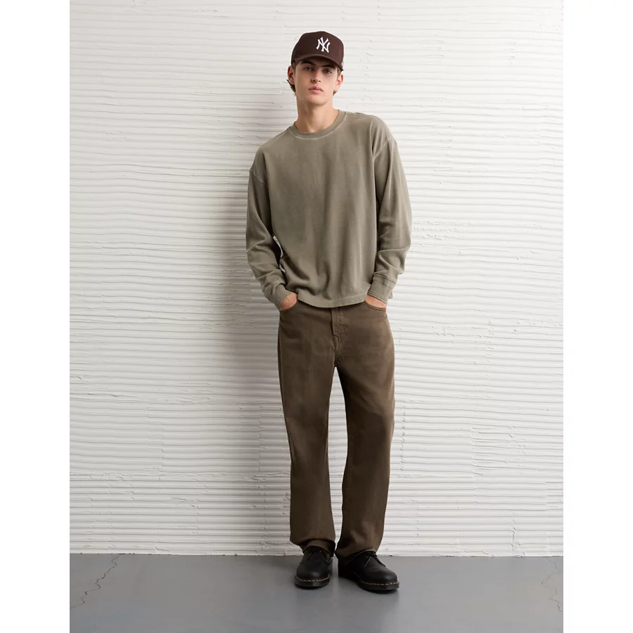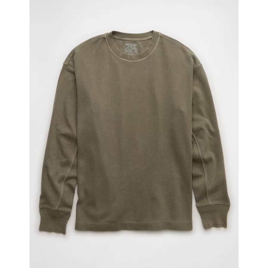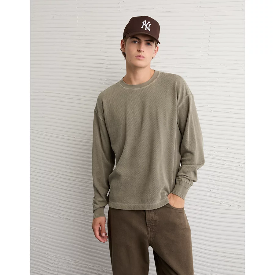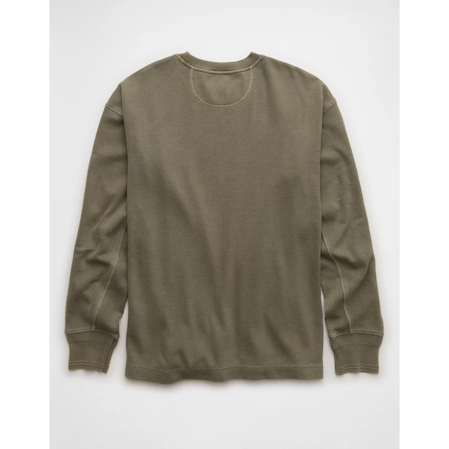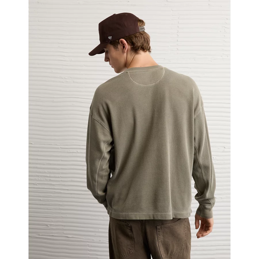 AE Boxy Washed Thermal Shirt - Dark Brown