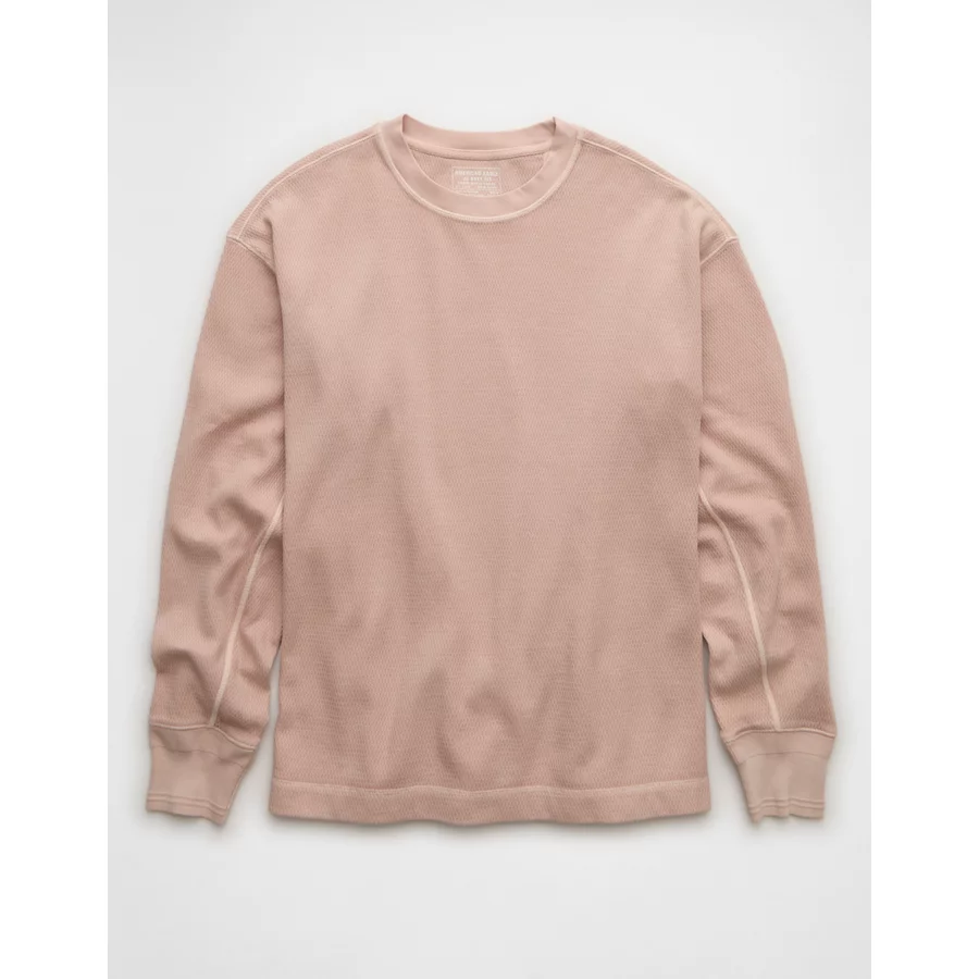 AE Boxy Washed Thermal Shirt – Pink