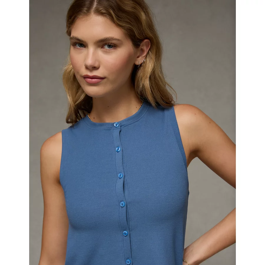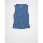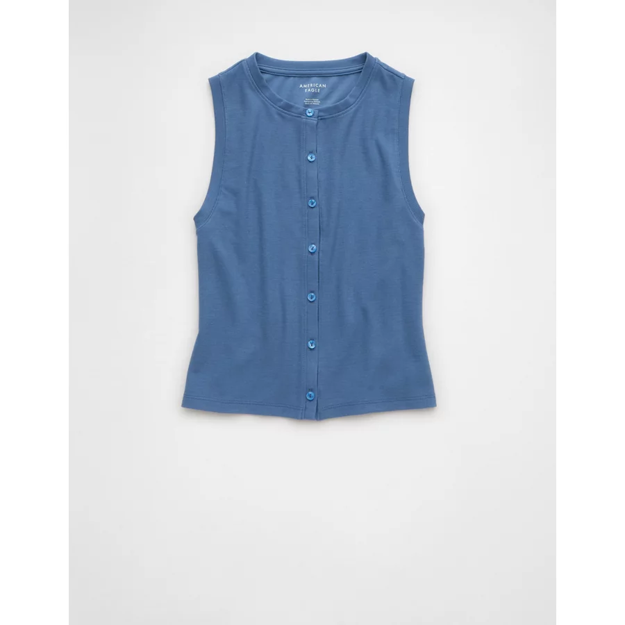 AE Button-Up Tank Top – Tidal Blue