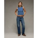 AE 8″ Dreamy Drape Stretch Low-Rise Baggy Jort – Medium Bright Indigo