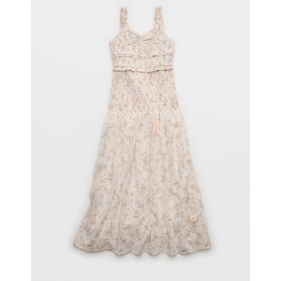 AE Catie Corset Smocked Floral Midi Dress – Cream