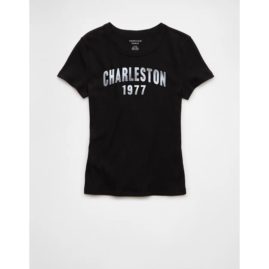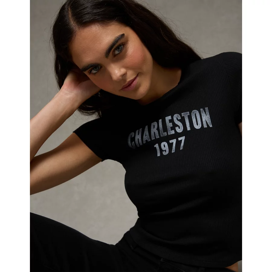 AE Charleston Graphic Hey Baby Tee – Black