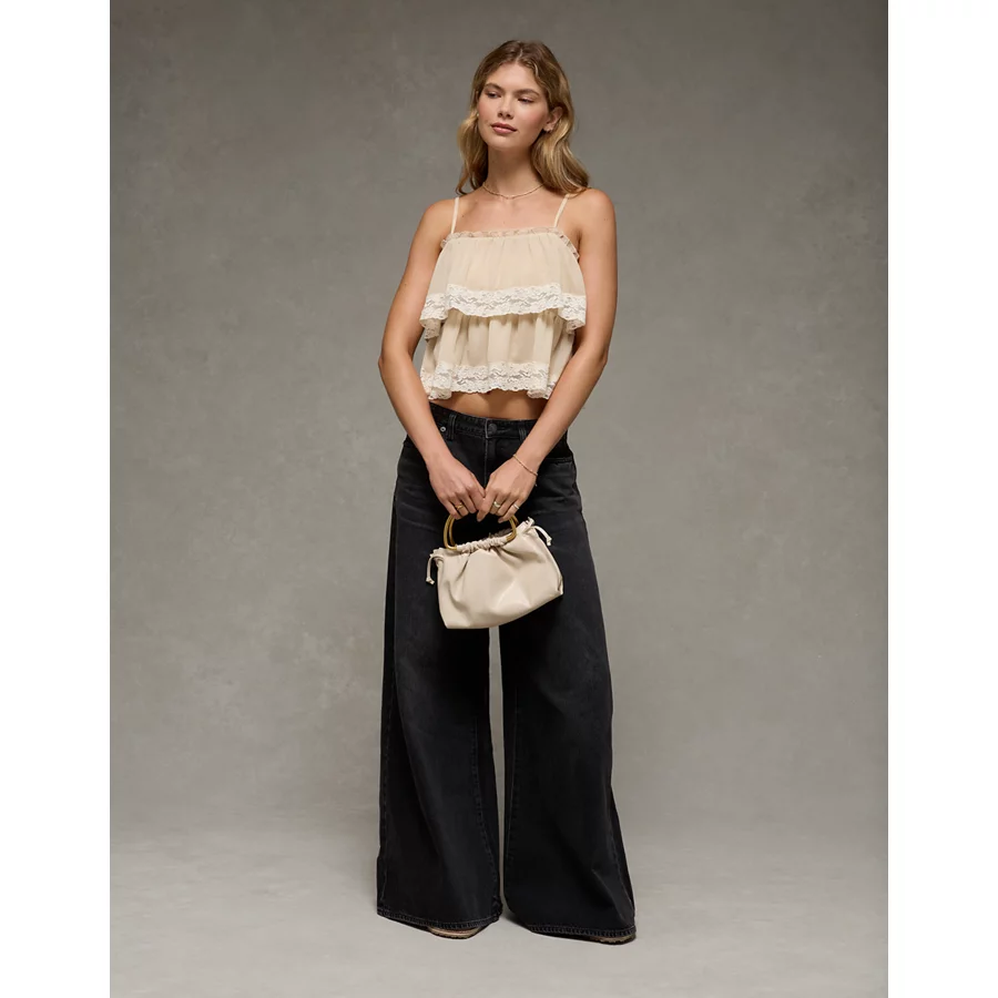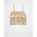 AE Chiffon Tiered Ruffle Tank Top – Light Khaki
