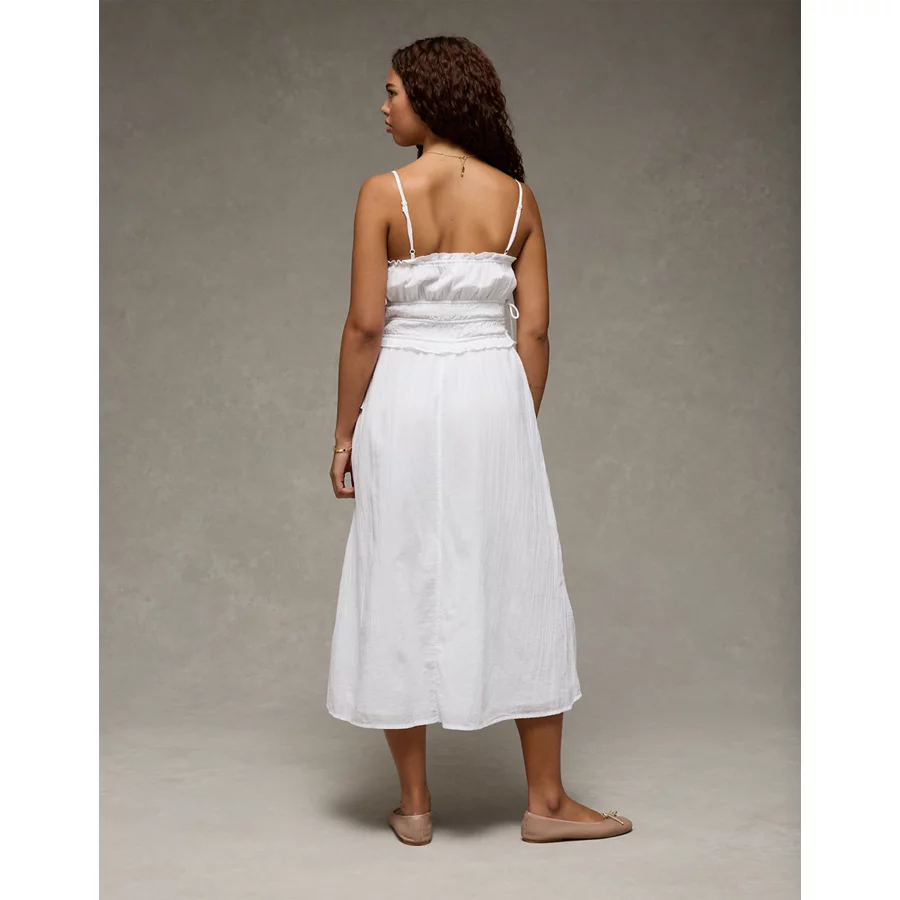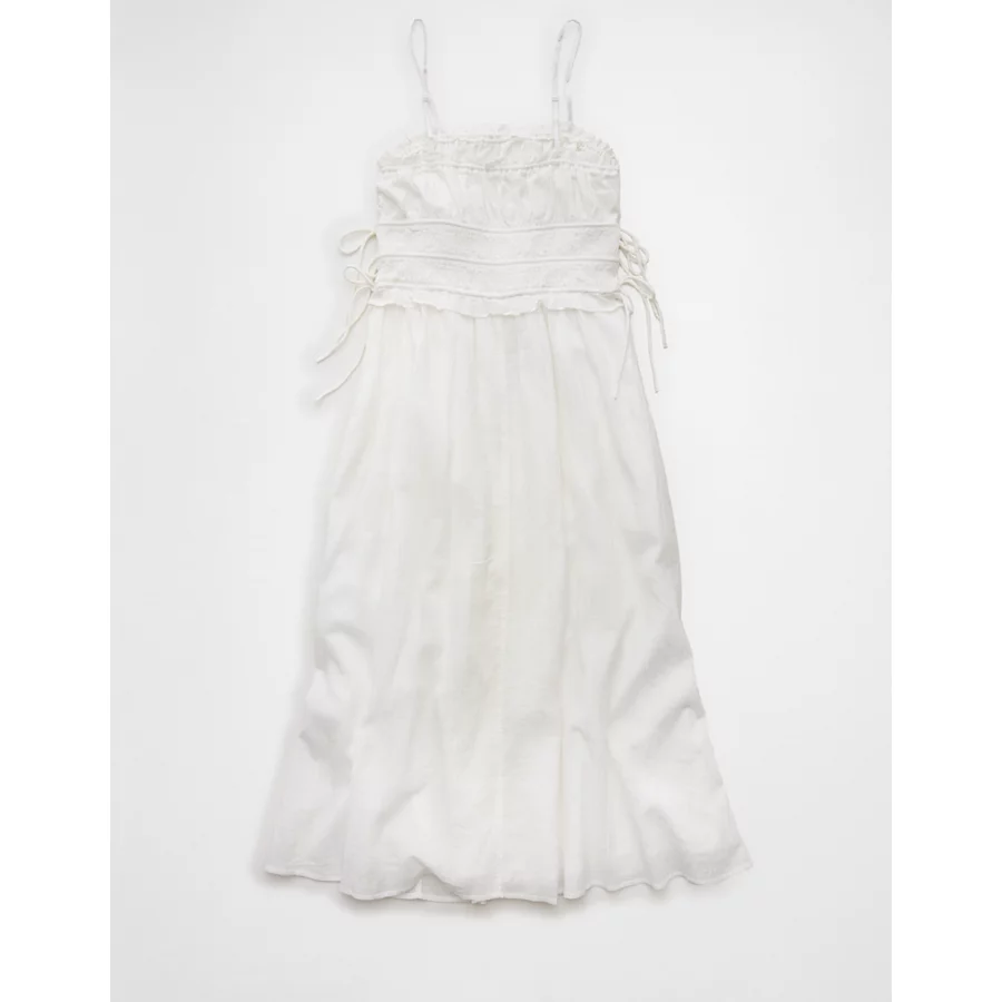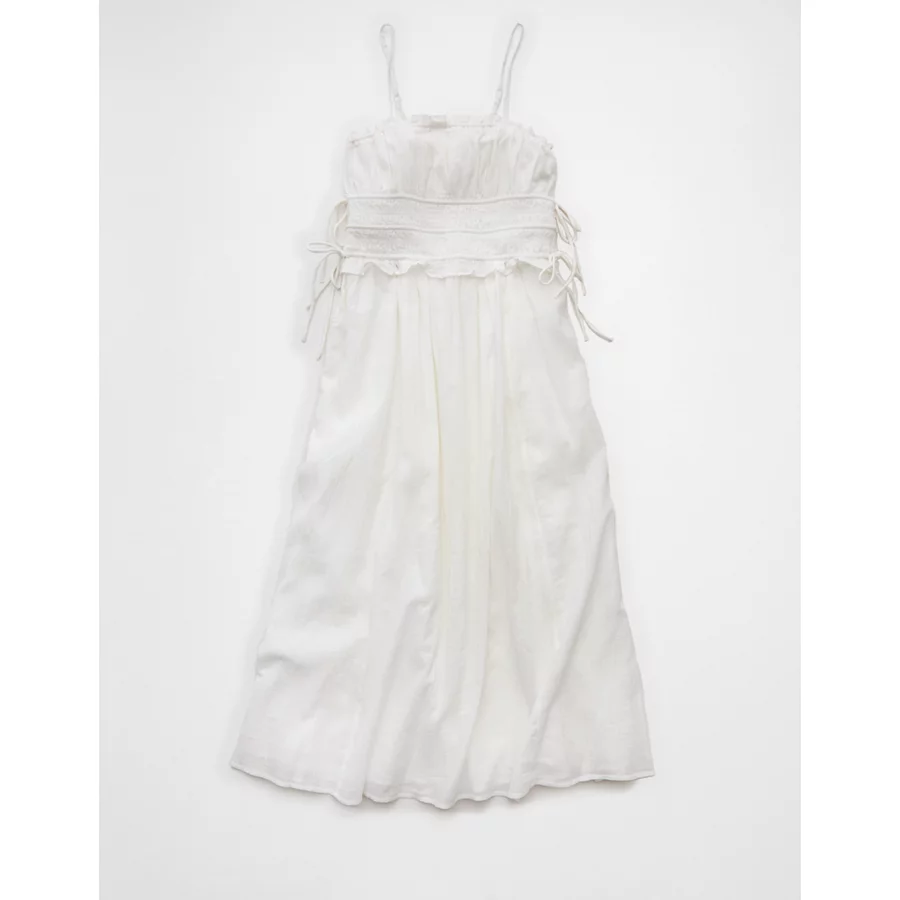 AE Corded Smocking Midi Dress – White Washed