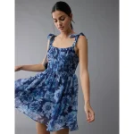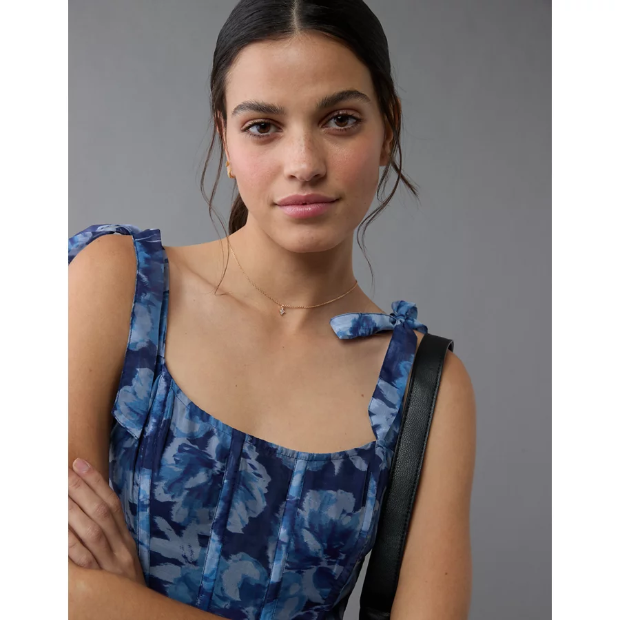 AE Corset Tie Strap Floral Mini Dress – Blue