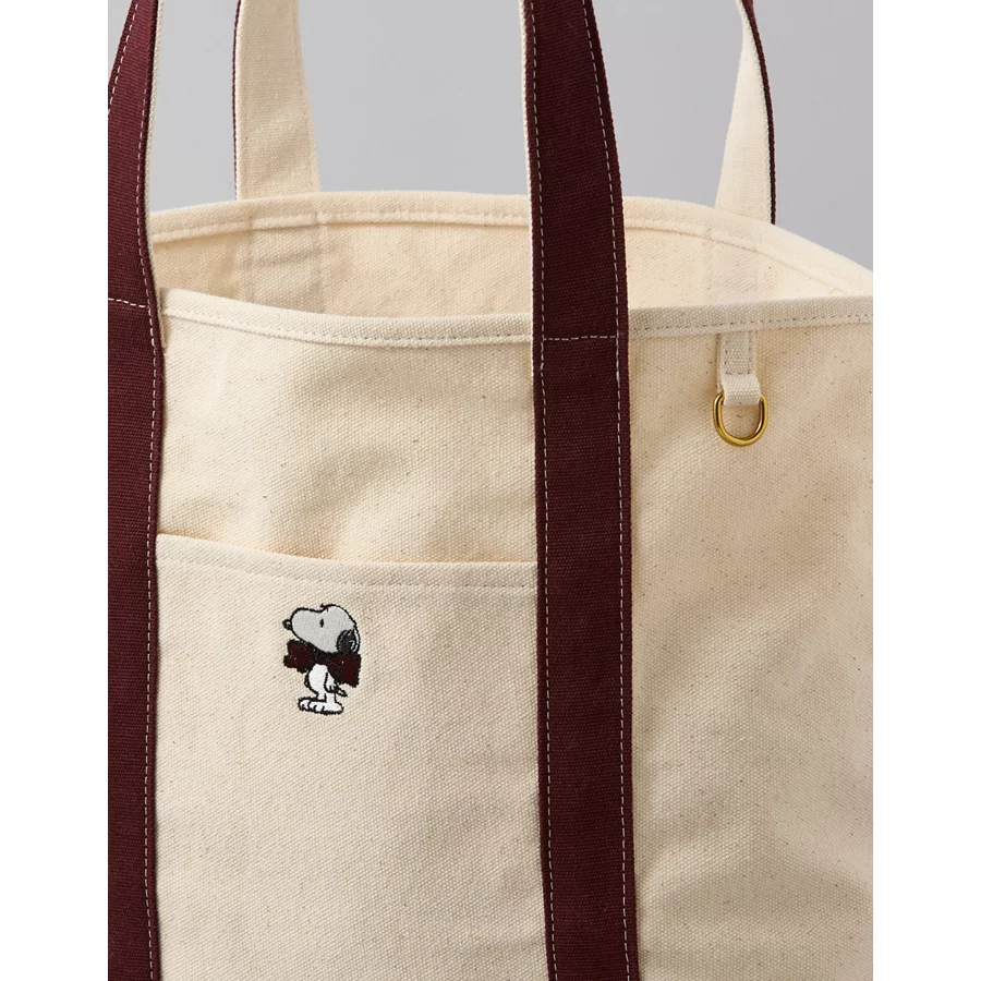 AE Cotton Canvas Snoopy Bow Tote Bag – Burgundy1