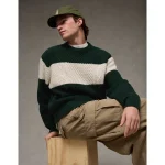 AE Cozy Cabin Chest Stripe Sweater – Pine