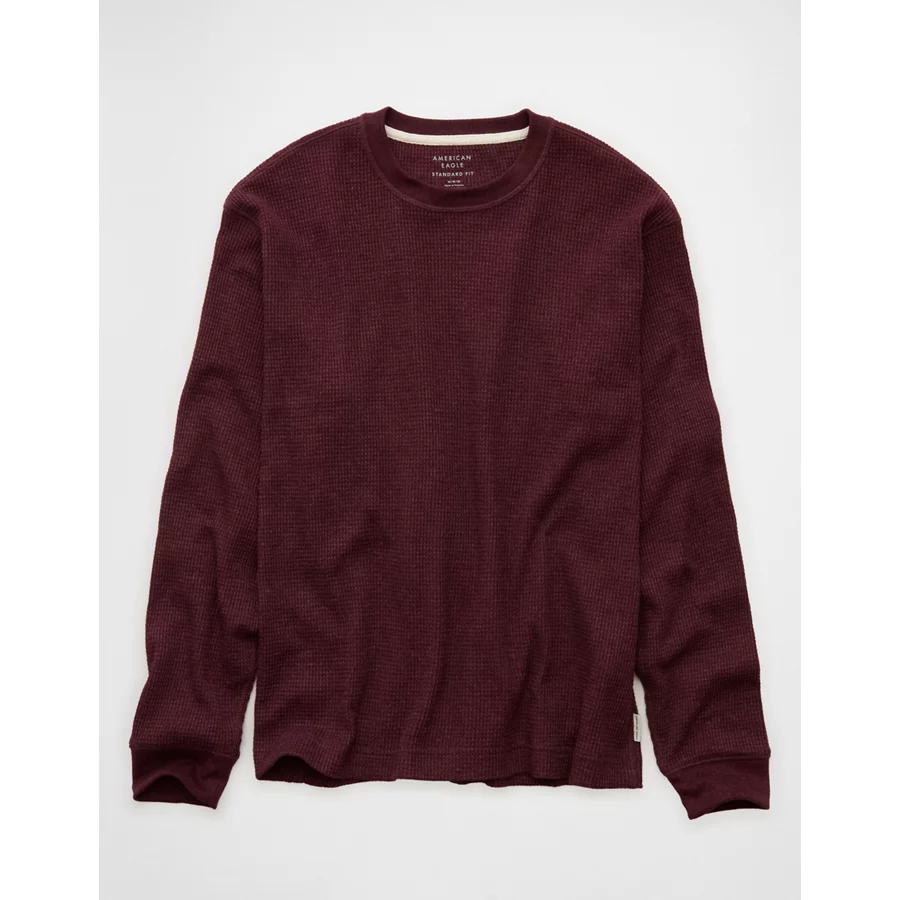 AE Cozy Waffle Thermal T-Shirt – Deep Burgundy