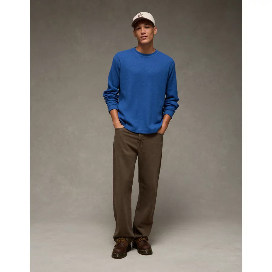 AE Cozy Waffle Thermal T-Shirt – Light Blue