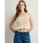 AE Crochet Peplum Tank Top – Cream